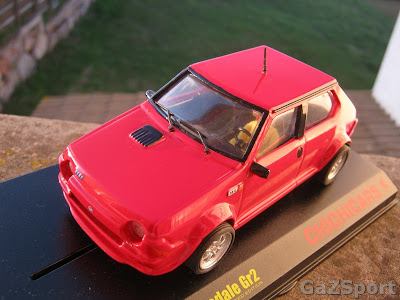 El resultado de dicha unión es, Chichicars una iniciativa que nos ofrece modelos inéditos en resina 1/32 RTR o como el caso de su primera referencia un modelo conocido que nadie había sabido reproducir con gracia, y que creo que ellos, le han sacado esa reproducción que hace bonito hasta un modelo como el Ritmo, y que además, dinámicamente en pista, funciona.La reproducción que nos ocupa, y primera referencia de la firma, es el Fiat Ritmo Abarth Stradale Grupo 2, y si, mas adelante habrá la versión de rallyes, con decoraciones como Alitalia u otras, y que como comentaba Diego, verá el master modificado para adecuarlo las nuevas especificaciones del modelo, ligeramente distinto del presentado.