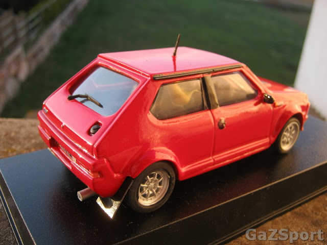 El resultado de dicha unión es, Chichicars una iniciativa que nos ofrece modelos inéditos en resina 1/32 RTR o como el caso de su primera referencia un modelo conocido que nadie había sabido reproducir con gracia, y que creo que ellos, le han sacado esa reproducción que hace bonito hasta un modelo como el Ritmo, y que además, dinámicamente en pista, funciona.La reproducción que nos ocupa, y primera referencia de la firma, es el Fiat Ritmo Abarth Stradale Grupo 2, y si, mas adelante habrá la versión de rallyes, con decoraciones como Alitalia u otras, y que como comentaba Diego, verá el master modificado para adecuarlo las nuevas especificaciones del modelo, ligeramente distinto del presentado.