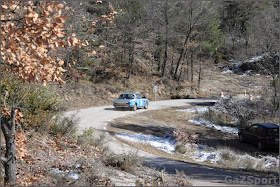 El company Jordi Pedra i en Ruben, que no s'han atrevit a descapotar el cotxe, tot i el sol, ja que la temperatura era gelida, estant a la 1 del migdia a tant sols 1º de temperatura.